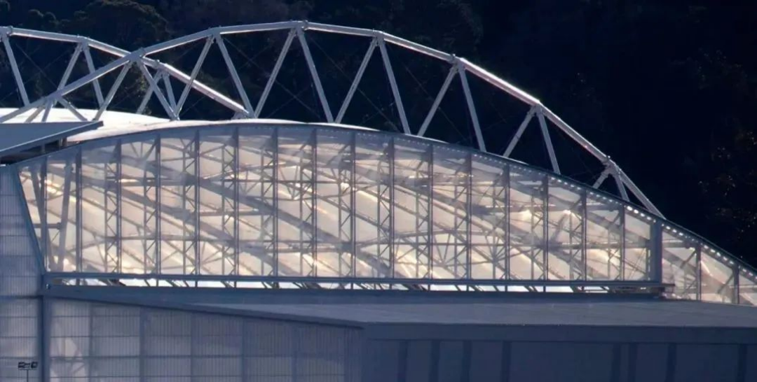 迄今為止,福賽斯·巴爾體育場(chǎng)仍是世界上擁有天然草皮的永久封閉式體育場(chǎng)。其屋頂由5個(gè)鋼桁架支撐,每個(gè)桁架跨度為105米,能夠承受一輛汽車(chē)的重量,主桁架(南看臺(tái))長(zhǎng)130米,重390噸。整個(gè)屋頂還覆蓋了2.05萬(wàn)平方米的ETFE材料。雖然ETFE并不是一種新產(chǎn)品,這種材料曾用于英國(guó)康沃爾郡(Cornwall)的伊甸園植物園(Eden Project)和中國(guó)北京的國(guó)家游泳中心“水立方”,但這是首次將其紫外線半透明特性在體育場(chǎng)中進(jìn)行應(yīng)用,并創(chuàng)造了南半球大型的ETFE覆蓋結(jié)構(gòu)。達(dá)尼丁的氣候寒冷潮濕,為鼓勵(lì)觀眾來(lái)此參加現(xiàn)場(chǎng)活動(dòng),這座屋頂也成為了體育場(chǎng)的重要特征——由于其外形酷似園藝溫室,這座全覆蓋的體育場(chǎng)被昵稱(chēng)為“玻璃屋”(The Glasshouse)。