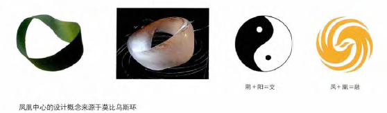 在這個設計中,“莫比烏斯環”的構思源自“鳳凰”的形象,莫比烏斯環數學模型的最大特點是“有界無邊”,消除了傳統建筑中的“正交”概念,所有曲線在360°的空間中連續循環,通過一個連續的、不斷變化的曲面將高聳的辦公樓和低矮的演播樓統一成一個封閉的整體。