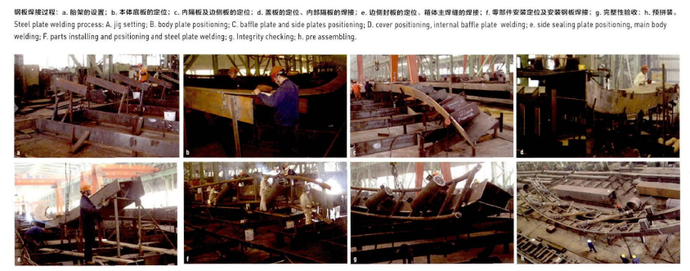 “樣箱”其實就是“內膽”,一個梯形截面主肋,去掉板厚,里面是空芯的,他們先用木頭做了一個“芯”,這個木頭“芯”的外皮,是完全能夠貼合主肋鋼板的內表皮輪廓的。這樣,用這種傳統的“木工活”就解決了進度的問題。這樣的方式不需要專業操作儀表的工人,非常直觀,一目了然。