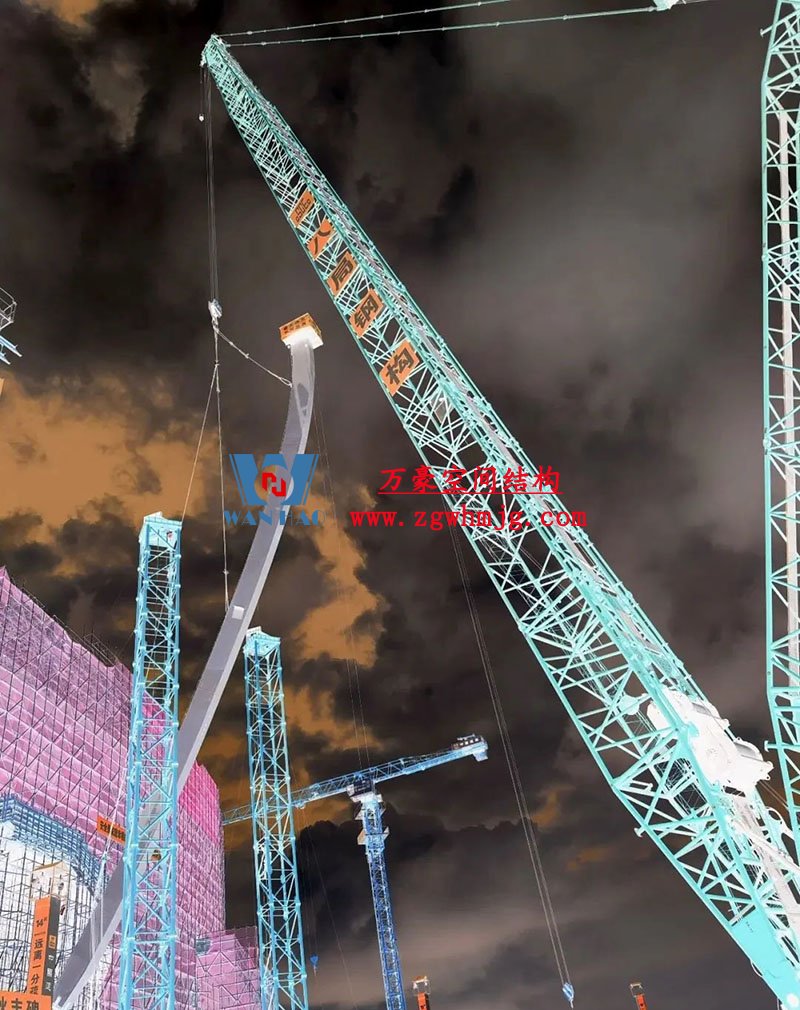 8月18日,隨著最后一榀環向桁架吊裝完成,重達14000噸的罩棚鋼結構順利封頂,重慶龍興足球場項目鋼結構全部完成,創2023年亞洲杯新建場館建設速度第一。這是重慶市打造的首座大型專業足球場,也是國內在建的規模最大專業足球場之一,其設計取意為“火鳳凰”。