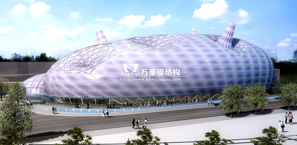 場館是一個24米高,輕鋼骨架外覆蓋雙層ETFE氣枕的建筑。