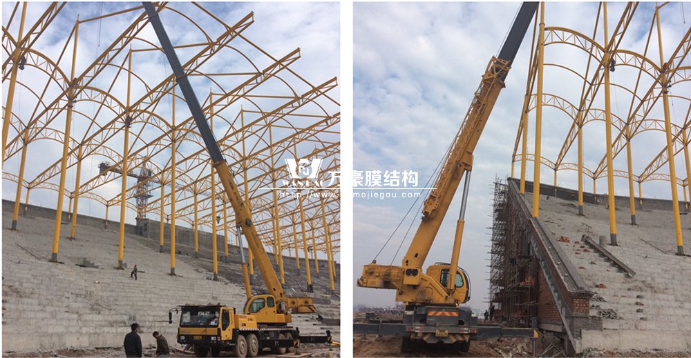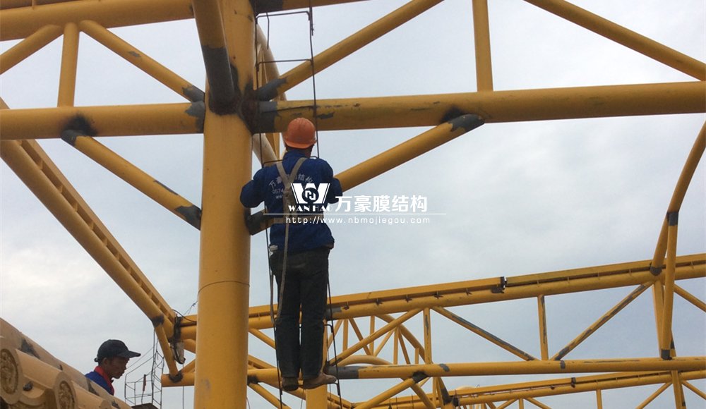 橫店影視城膜結(jié)構(gòu)體育場項目,項目近萬平米,其中鋼結(jié)構(gòu)500多噸,鋼結(jié)構(gòu)部分現(xiàn)已接近尾聲。感謝現(xiàn)場50多位員工及管理團隊,在寒冷的天氣中,堅守自己的崗位,兢兢業(yè)業(yè),把工作做到了極致,感謝他們的付出!