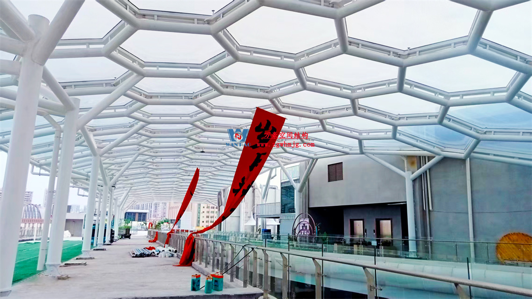 在經過現場施工團隊不斷加班加點搶工期,項目建設進度也進入尾聲,ETFE氣枕膜結構也即將安裝完成,又一造型獨特、性能卓越的膜結構天幕即將呈現在大眾眼前,成為城市的一道亮麗風景線。