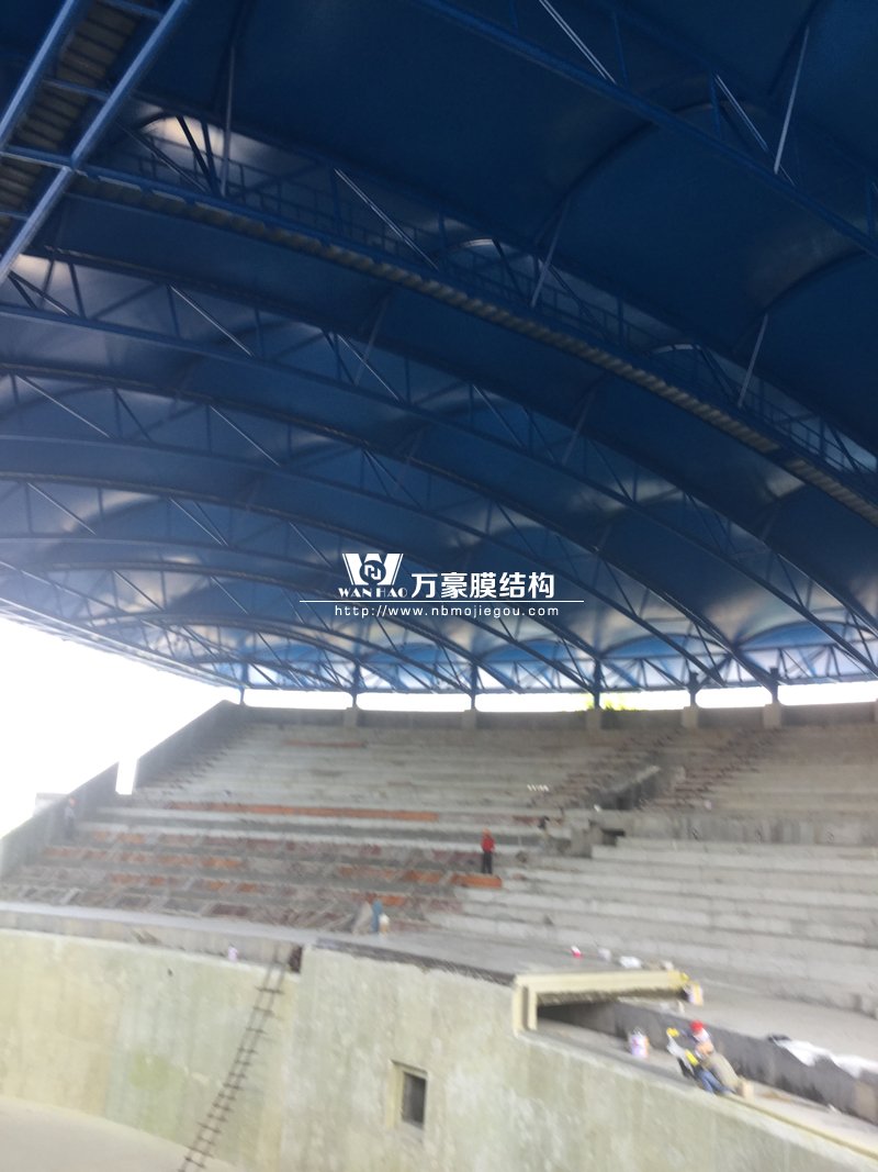 橫店影視城夢幻谷海豚館膜結構工程順利完工,工程完工后達到了設計要求,工程完成后的效果得到業主及領導的一致好評。本膜結構工程寬94米,長61.5米,高21.3米,面積4163平方米。本工程采用藍色膜布,和海豚館的環境想配合能達到更好的效果。同時公司在嘉善三小體育館工程也大部分完工,本工程長50.68米,寬25.7米,高15米,面積1400平方米。