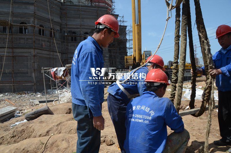 橫店圓明新園俄羅斯館屋頂整體吊裝順利完成,300多噸的大吊車,20多噸重的鋼結構裝飾球,80米高的作業平臺,在萬豪現場管理人員和工人的緊密協調下,經過一周的晝夜努力終于大功告成,本次吊裝從4月17日開始,前期天氣晴朗無風,是吊裝的好天氣,吊裝也是順利進行,之后的幾天陰雨不斷,大家為了吊裝盡快順利完成,在雨小的時候冒雨進行吊裝,終于在4月22日吊裝正式完成。
