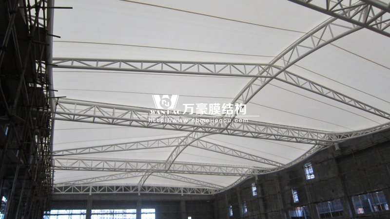 嘉善三小體育館屋面膜結構加蓋,面積約1400平方米,經過公司的不斷努力,工程已經在工期內順利完成。本工程采用白色膜材料,膜結構因為跨度大、工期短、造型美觀等特點,已經在越來越多的工程上應用到,體育場館非常適合膜結構的使用,近年來不管是大型的體育場館還是小型的運動場地,選擇膜結構的都非常多。