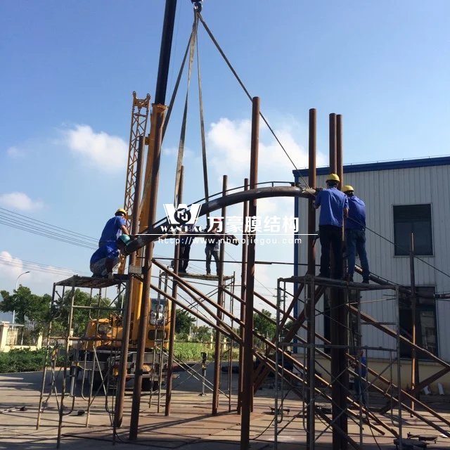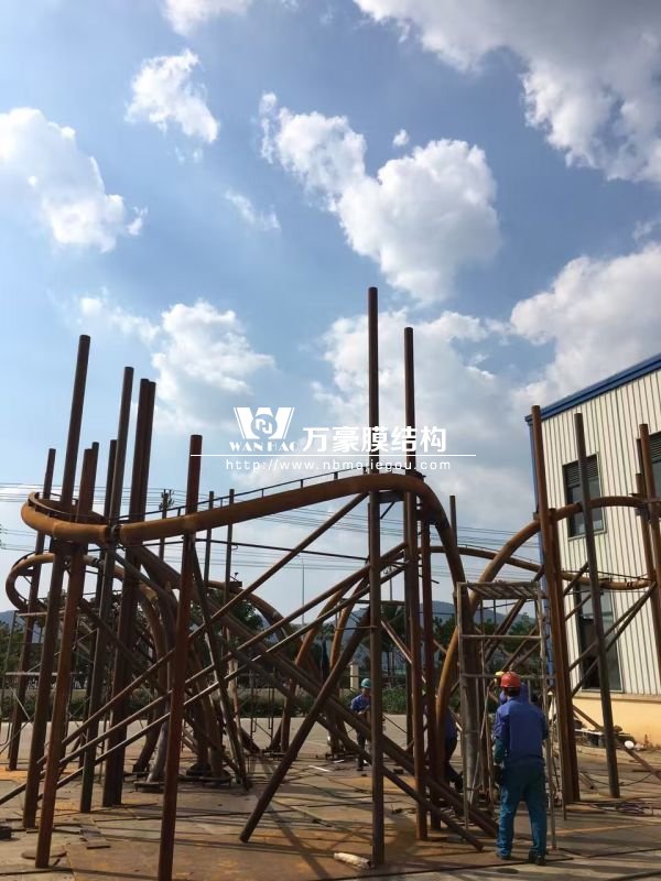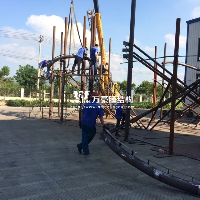 我司承建的斯里蘭卡膜結構項目,經過和中方代表進行完整的交流后,斯里蘭卡方面僅能提供圖片,為此我司根據要求制作了完整的方案進行匯報,經過多次的溝通交流,最終確定了圖紙、施工方案及生產方案。