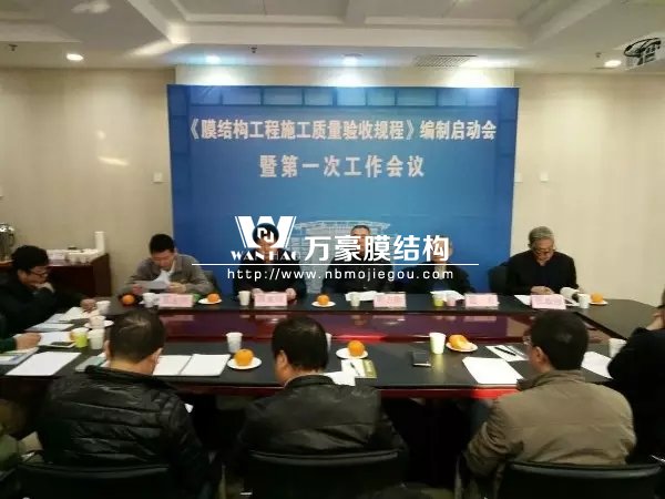 2016年12月17、18日,由北京工業(yè)大學建筑工程學院聯(lián)合中國鋼結(jié)構(gòu)協(xié)會空間結(jié)構(gòu)分會主持編制的《膜結(jié)構(gòu)施工質(zhì)量驗收規(guī)程》和《空氣支承膜結(jié)構(gòu)設計與施工技術指南》編制啟動會順利召開。來自中國建筑科學研究院、同濟大學、哈爾濱工業(yè)大學、上海交通大學、北京交通大學、北京市建筑設計研究院、上海現(xiàn)代建筑設計(集團)有限公司以及膜結(jié)構(gòu)會員單位的30多位專家出席了啟動會和第一次工作會議。(我司也榮幸的出席)