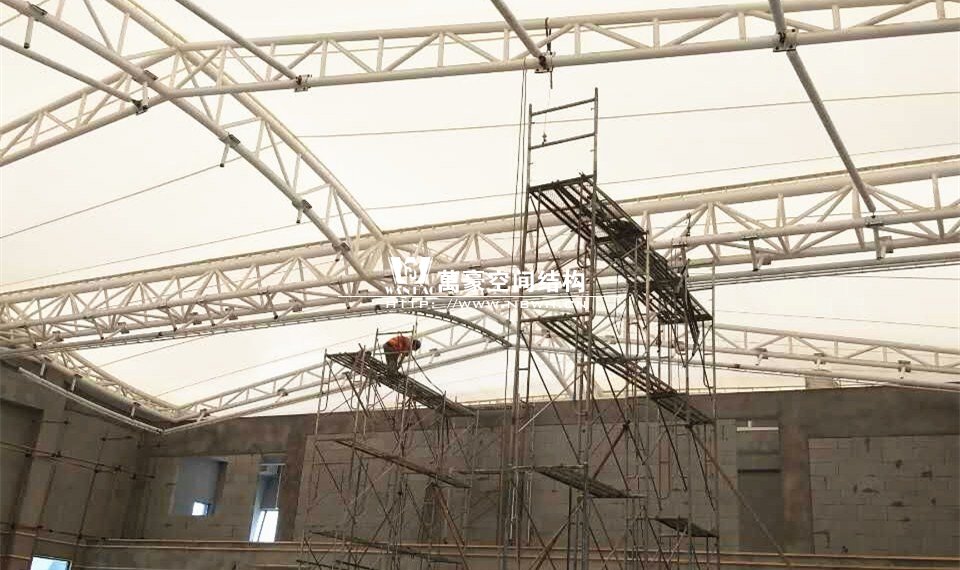 嘉善實驗學校體育館內膜工程選用進口內膜材料,在原有外膜基礎上進行安裝,精度要求較高需與原外膜做很好的斜街,因地理位置特殊,在五樓頂部,無法使用吊車,現場施工條件艱苦,吊裝難度大,且因業主要求,完全按照“錢江杯”標準建造,項目于2017年7月11日順利簽約并投入安裝。