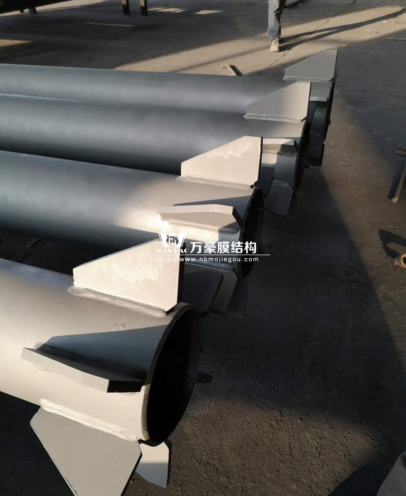 近日,萬豪接了一個ETFE膜結構車棚加工項目,那就是廣安公交車棚項目。這個項目的鋼結構加工以及膜結構加工都是在萬豪工廠內完成。