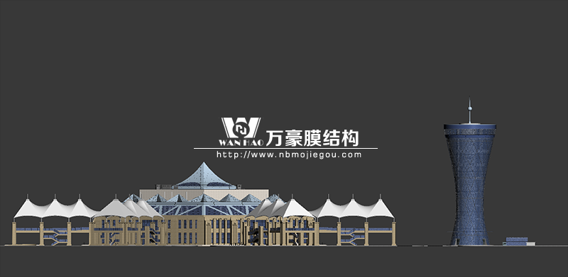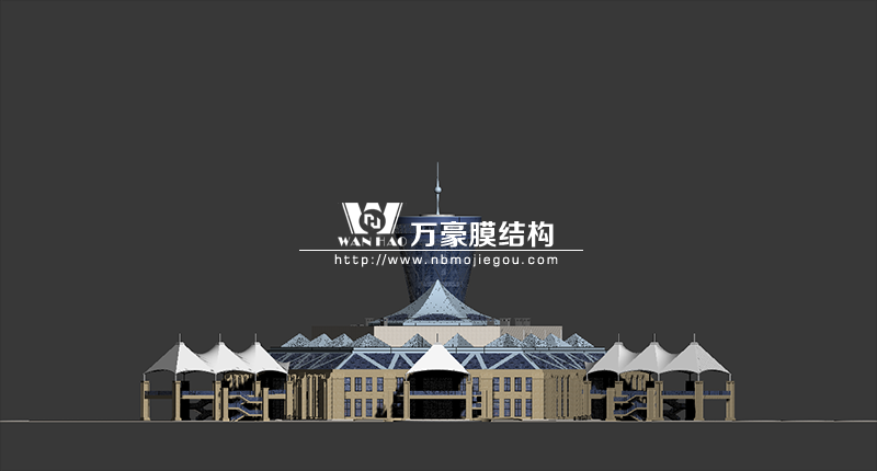 主樓屋頂為六邊形空間結構穹頂,墻面為蜂窩狀幕墻,連廊部分為具有當地文化特色造型的膜結構。