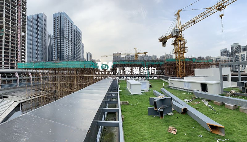 此項目位于廣東省深圳市龍華區(qū),膜結(jié)構(gòu)展開面積5000平米,用鋼量300噸。