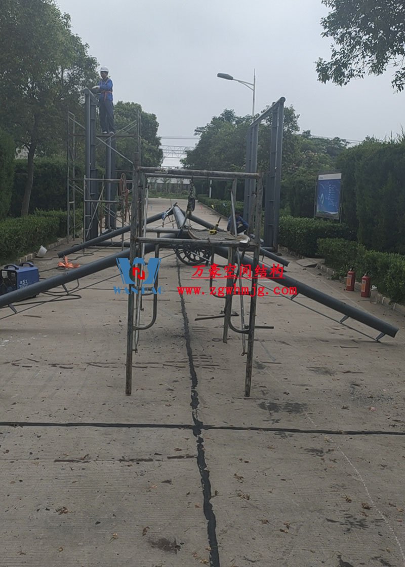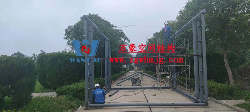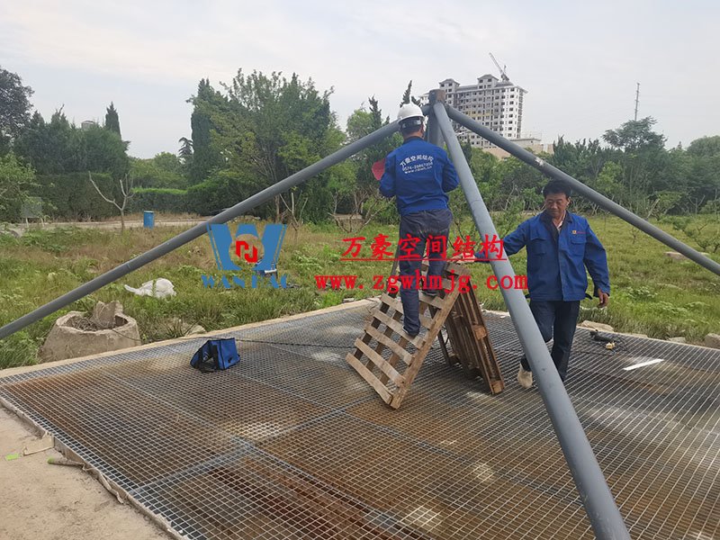項(xiàng)目采用鋼骨架反吊膜結(jié)構(gòu),工程內(nèi)容由混泥土基礎(chǔ)工程、鋼結(jié)構(gòu)工程、反吊膜屋面工程三部分組成,膜結(jié)構(gòu)展開面積12000平米。