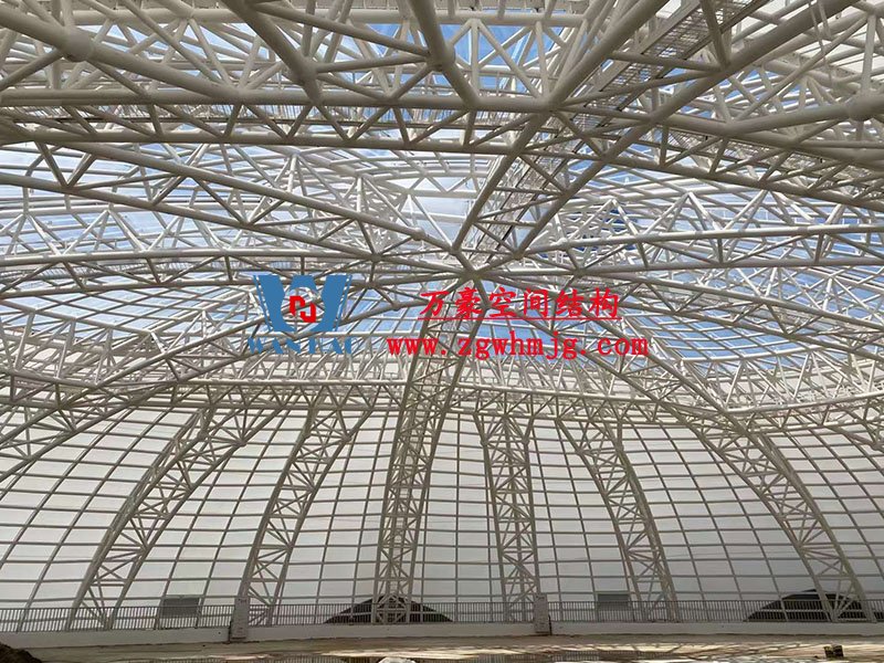 全封閉籃球館和多功能館結構部分采用了部分珩架與單層雙曲面網殼組合,屋面膜選用了不同顏色不同材質組合構成了含苞待放的花朵,項目落成后將為當地體育活動增添活力。