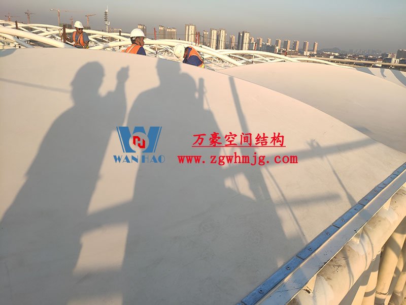 目前,項(xiàng)目鋼結(jié)構(gòu)接近尾聲,開始安裝膜結(jié)構(gòu)。