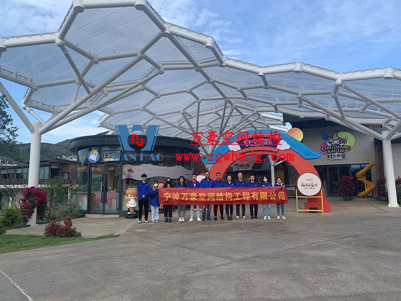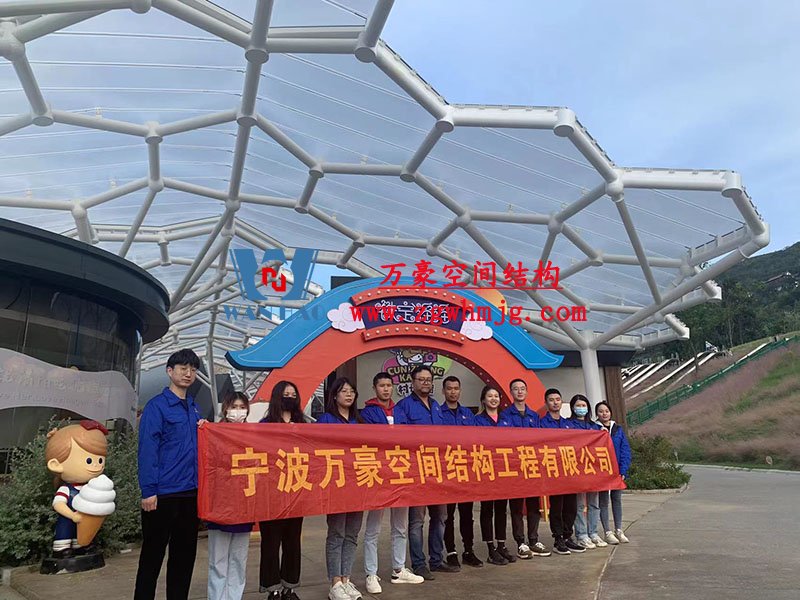 萬豪空間結構員工到臺州大板橋ETFE氣枕天幕項目、溫州鐵定溜溜樂園ETFE天幕及PTFE景觀傘膜結構工項目學習交流
