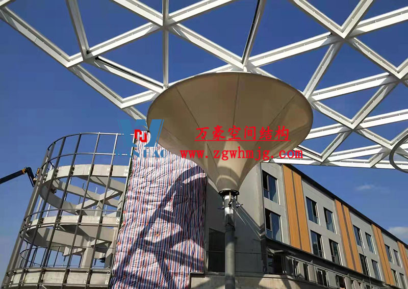 臺州大板橋ETFE氣枕天幕項目位于浙江省臺州市椒江區,由ETFE氣枕天幕及PTFE膜結構組成。