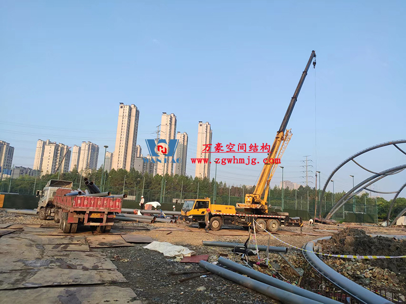 目前,網球場完成5個軸線,籃球場完成4個軸線。