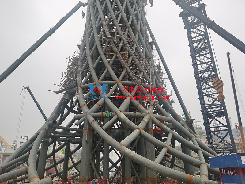 塔身為筒中筒鋼結構,內筒為等間距布置的10根豎柱和水平梁組成,外筒為雙向螺旋交織的菱形網格曲線空間鋼結構,形似廣州小蠻腰,呈現“纖纖細腰,不盈一握”的驚人審美效果,也與中國傳統審美觀相契合。