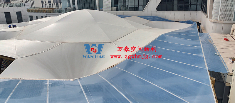 東盟特色商品匯聚中心膜鋼構工程位于廣西省南寧市良慶區利華路23號中新南寧國際物流園內,該項目用鋼量260噸,ptfe膜結構展開面積3500平米,ETFE膜結構展開面積1500平米。