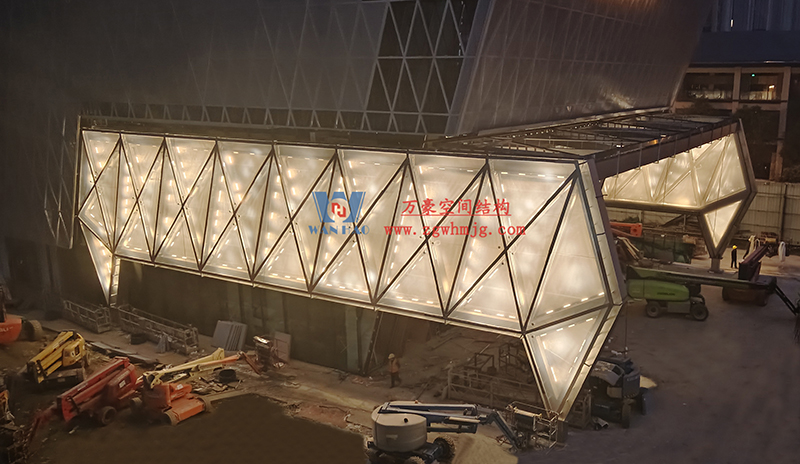 中建錦源匯廣場10-3#樓膜結構工程位于四川省成都市高新區應龍南一路與觀東二街交匯處,該項目ETFE膜結構展開面積700平米,PTFE膜結構展開面積700平米。由寧波萬豪空間結構工程有限公司承建。